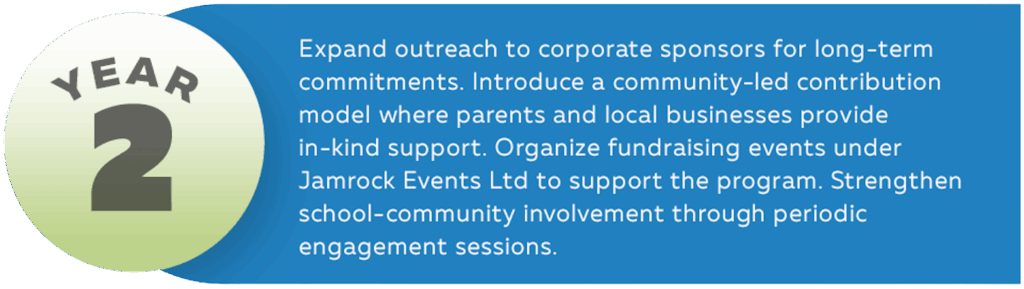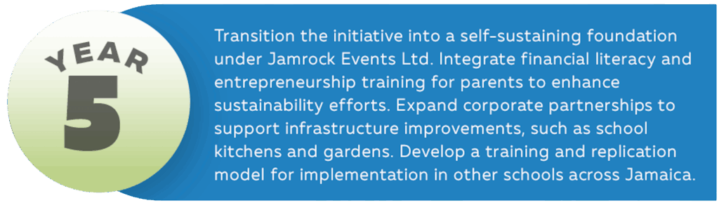 The Partial Incentives Breakfast Program is more than a feeding initiative, it is a movement toward community empowerment and shared responsibility. By integrating local partnerships, education, and self-sustaining strategies, Jamrock Events Ltd aims to ensure the program thrives beyond its initial years. The goal is to establish a lasting legacy where every recipient of assistance also contributes in a meaningful way, fostering a cycle of sustained impact for generations to come.